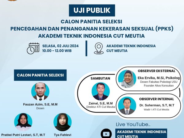 AGENDA : Uji Publik Calon Panitia Seleksi Satuan Tugas Pencegahan dan Penanganan Kekerasan Seksual (PPKS) ATI Cut Meutia